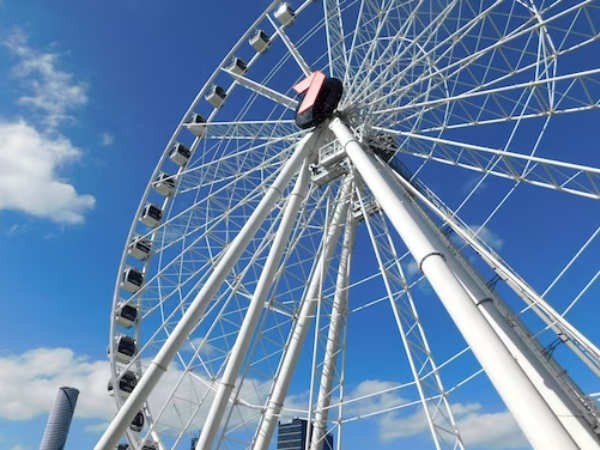 Enclosed gondolas carry visitors 200 feet into the air day and night for panoramic views of Brisbane.